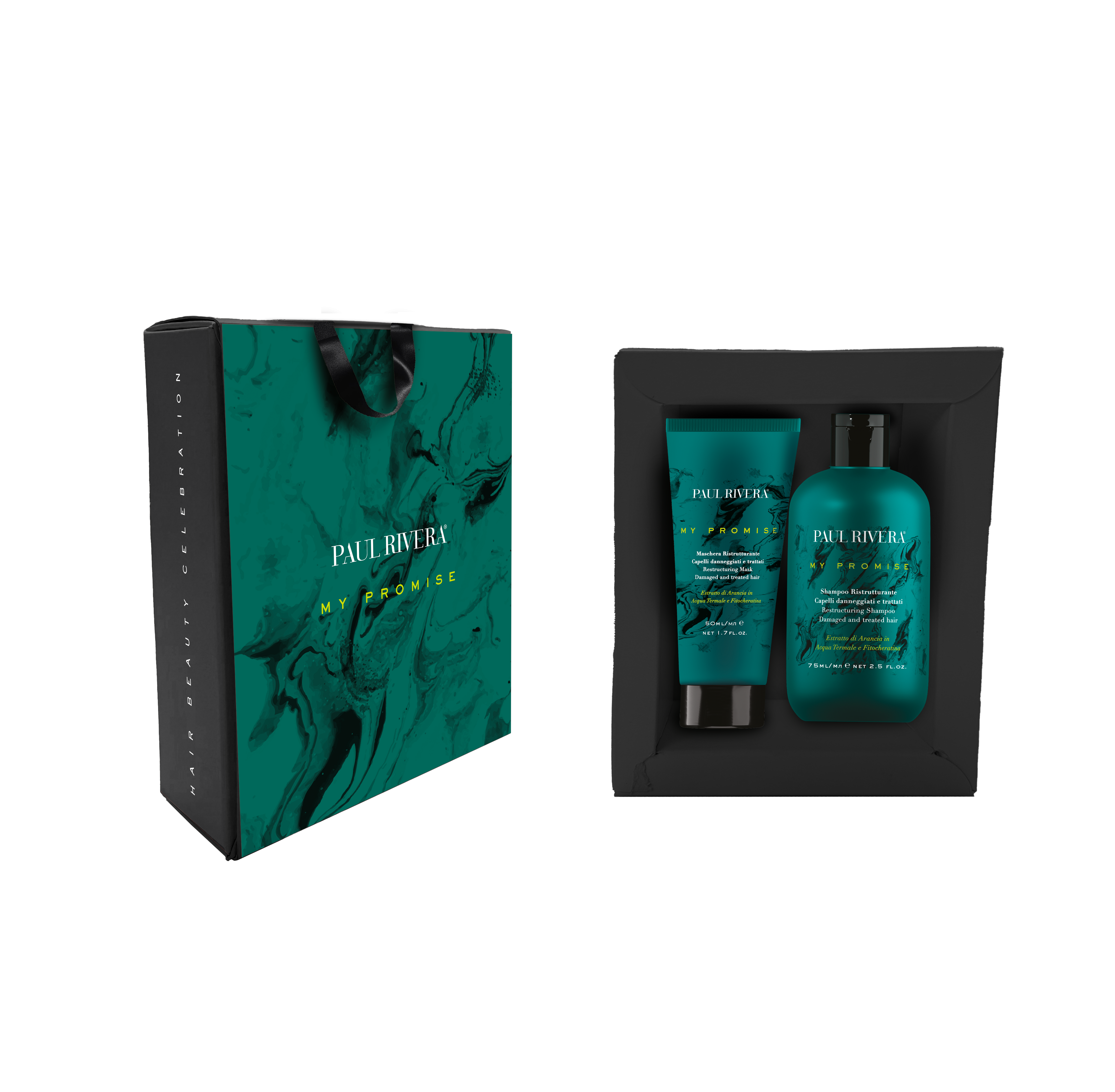 My Promise to ekskluzywny zabieg regeneracyjny, stworzony dla włosów wymagających intensywnej odbudowy i głębokiego odżywienia. Rytuał rozpoczyna się zastosowaniem specjalistycznego szamponu, który delikatnie, a jednocześnie skutecznie oczyszcza włosy i skórę głowy, przygotowując je na przyjęcie składników aktywnych.